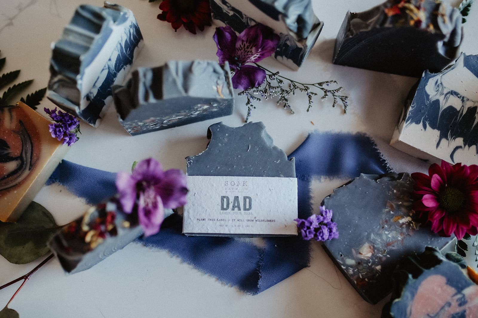 Celebrate the greatest dads in the world with the DAD Soap Bar by SOAK Bath Co! This soap bar is scented with a musky and woodsy scent profile of yuzu, bergamot, lemon, peppercorn and ginger, a scent Dads will love!
