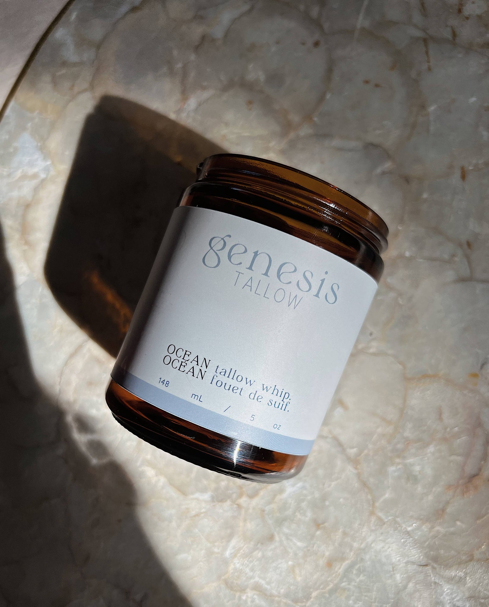 Refresh your skin with Whipped Ocean Tallow Balm. It is handcrafted with only the best quality grass fed/finished beef tallow and whipped into a spreadable mousse for a smooth and velvety application. This unique frothing method ensures your skin absorbs your tallow more quickly and evenly. - Sizes: 1.5oz, 3oz - Ingredients: Grass Fed/Finished Beef Tallow (no hormones or antibiotics), Extra Virgin Olive Oil, Therapeudic Grade Essential Oils (Rosemary, Cedarwood, and Lavender).