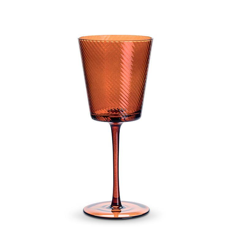 Add some dazzling style to your entertaining with this striking Swirl Optic Wine Glass. This mouth blown glass is hand-crafted out of dark amber-coloured glass for an understated complement to its uniquely textured surface, and a distinctive way to celebrate any toast or occasion. Optic shape may exhibit inherent natural variations. Hand wash only.
