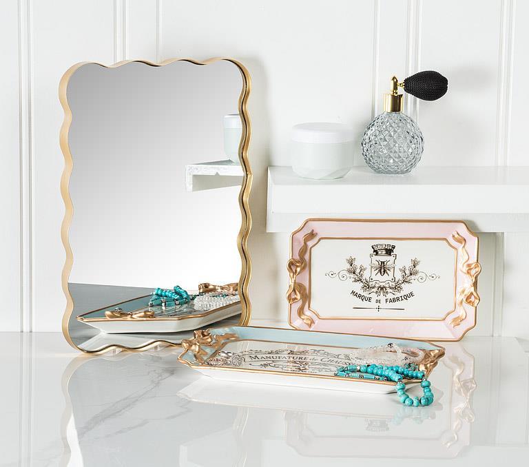 Add elegance and shine to your space with this round, scalloped-edge mirror. Measuring 12 inches in diameter, its unique wavy frame in a warm metallic finish brings both sophistication and playfulness to any wall. Compact yet eye-catching, this mirror is perfect for hallways, bedrooms, powder rooms, or as part of a gallery display. Stylish, versatile, and functional, this mirror is an easy way to bring light into your home.