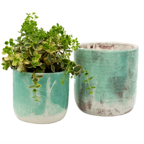 Aged Clay Cylinder Pot + Saucer Set of 3